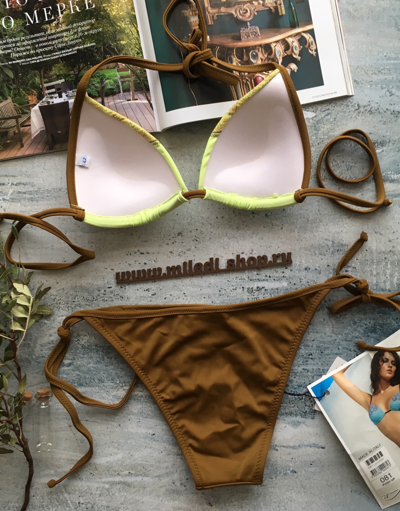 | Миледи. Татьяна, 081 модели нет в 46-м размере. Посмотрите Amarae 029 push-up в разделе Распродажа, плотный треугольник-шторка с пуш-ап, однотонный. Также можем сдлеать подборку из других брендов, пишите в Вотсап. | 28.04.2021 Светлана. Здравствуйте, объём под грудью 81 см, грудь 97. Бёдра 102. Какой купальник этой модели мне подойдёт? И есть ли в наличии сейчас 46 в салатовым цвете?