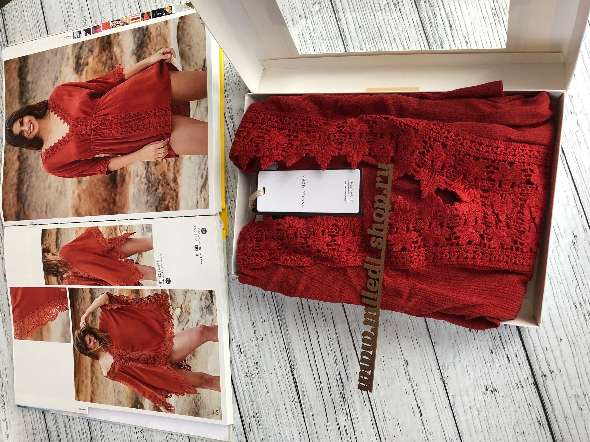 Рукава 3/4, кружевной край. V-образный вырез, отделка кружевом.